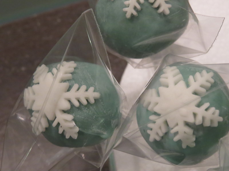 Leckerer Schokokuchen getränkt mit Amaretto verbirgt sich unter der eisblau-gefärbten Schokolade mit Fondant-Schneeflocken!