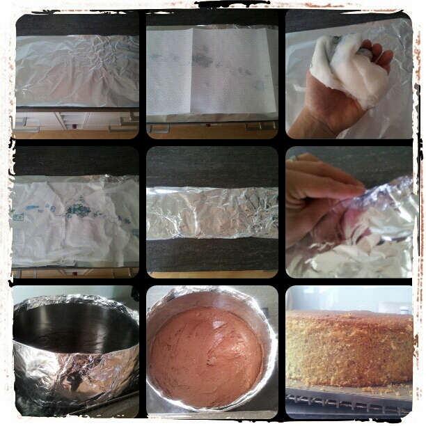 Da der Rand des Kuchens viel schneller fertig bäckt, als die Mitte, wölbt sich die Mitte nach oben. Dies kann durch die Isoliermethode verhindert werden und euer Kuchen wird ganz ebenmäßig. Dabei kann sich die Backzeit jedoch etwas verlängern! Also in jedem Fall die Stäbchenprobe machen!!!!!!!!