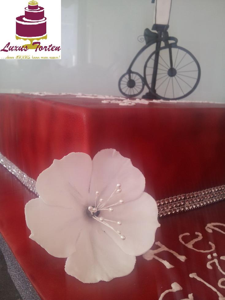 Leider war es bei mir in der Wohnung mal wieder extrem heiß (Dachgeschoß im 4. Stock), so dass mir das Fahrrad 2 mal gebrochen ist und auch die Blumen haben nicht wirklich gehalten. :( Auch das Icing für die Schrift wollte nicht die Konsistenz bekommen, die ich haben wollte.... naja, den Kampf hab ich trotzdem gewonnen! ;) ;) ;) :-D