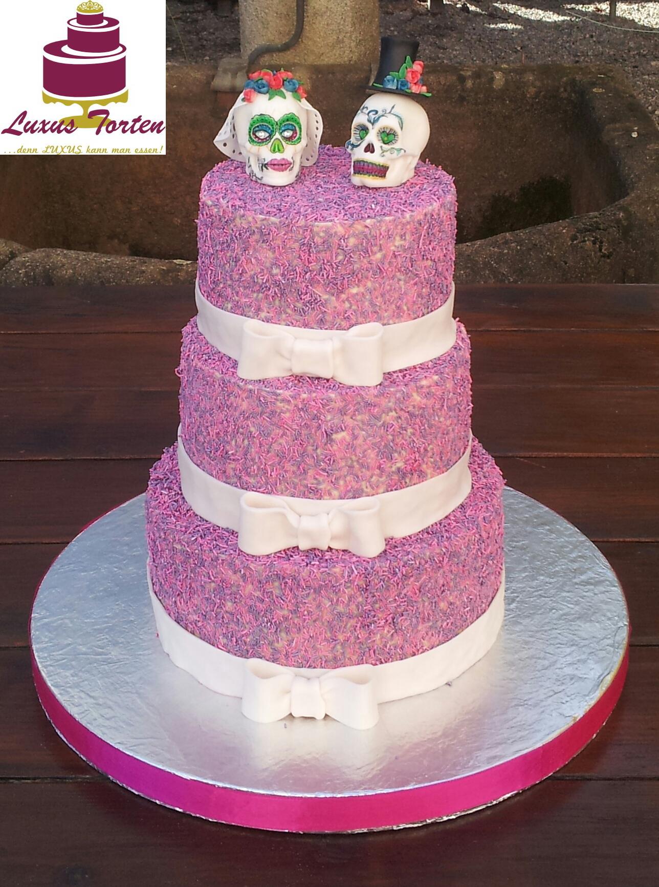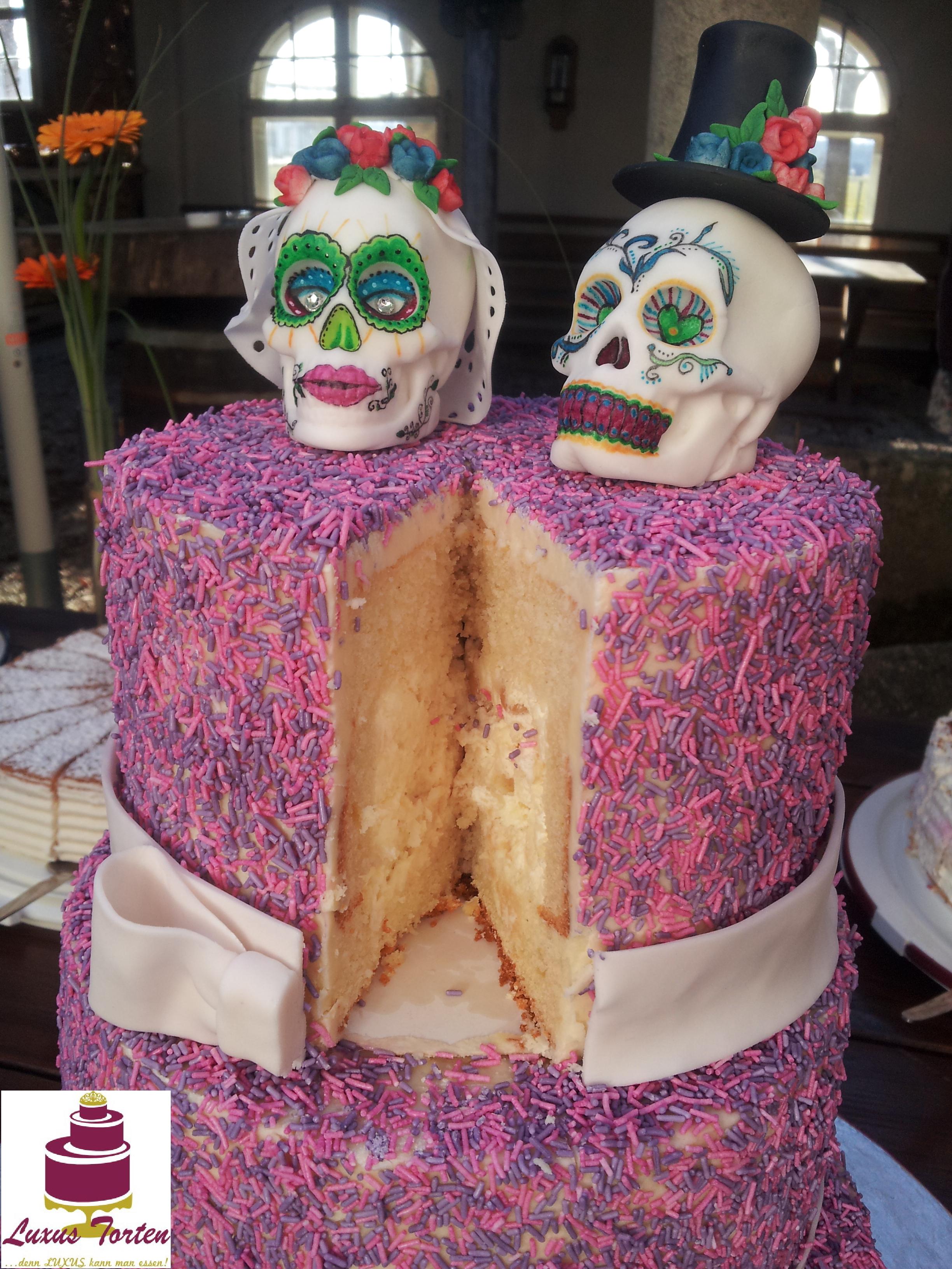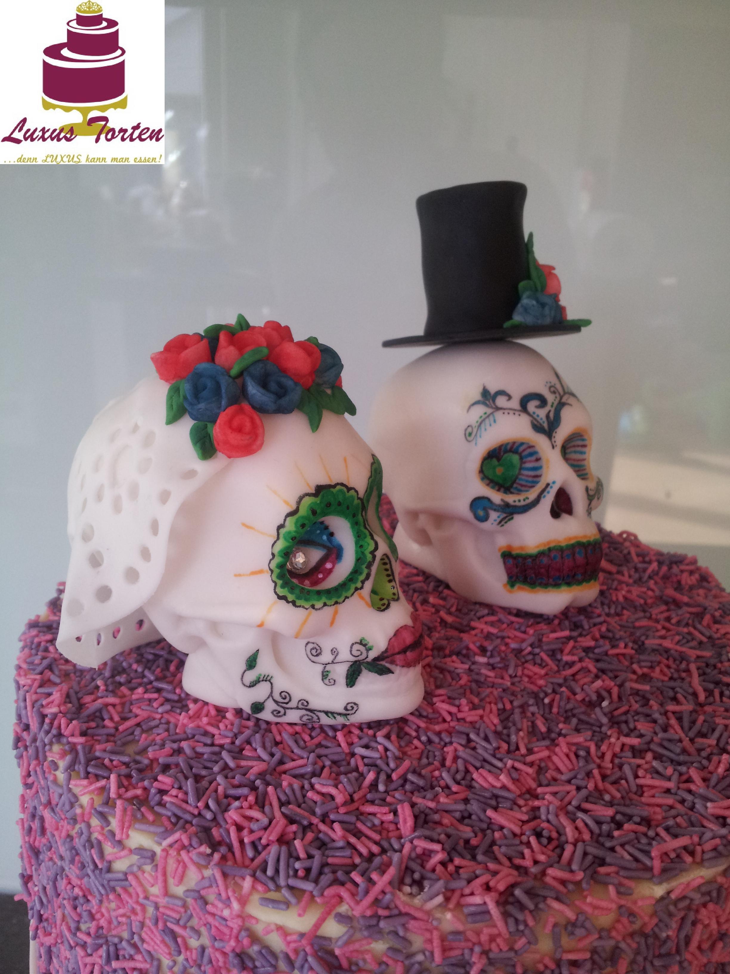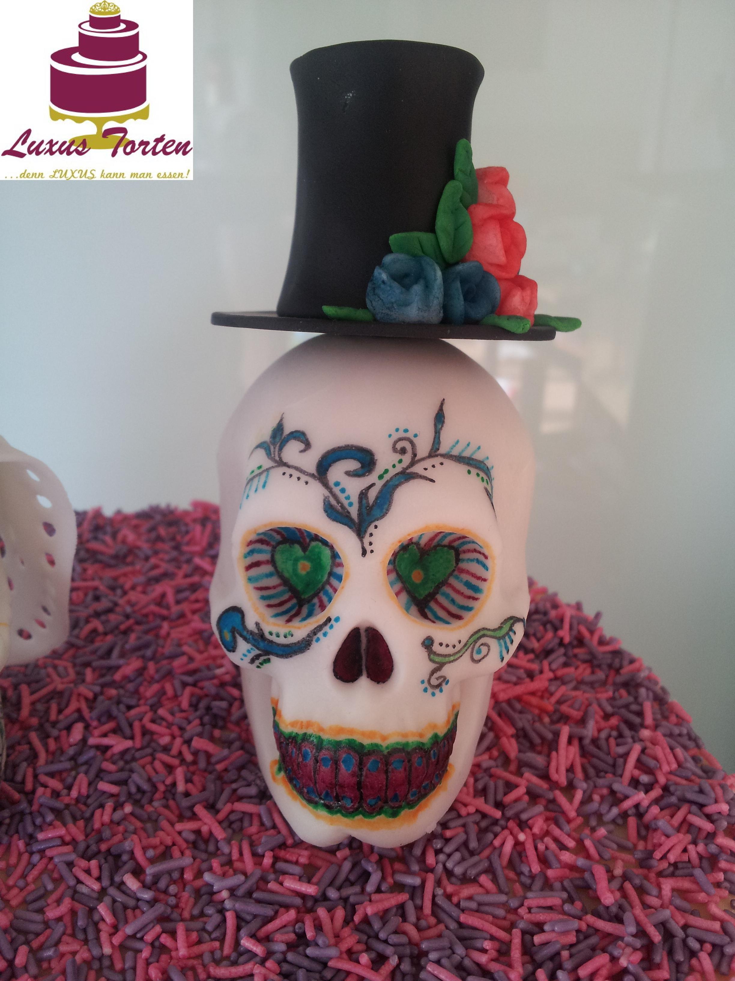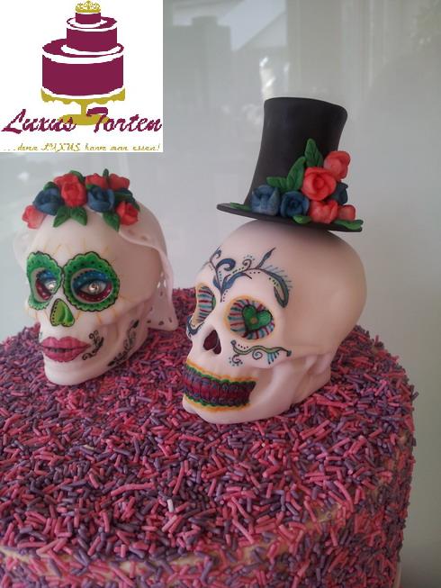 Die Totenköpfe sind aus Fondant und mit den Farben von TRAWOSA Lebensmittelfarben bemalt.
