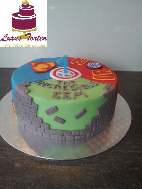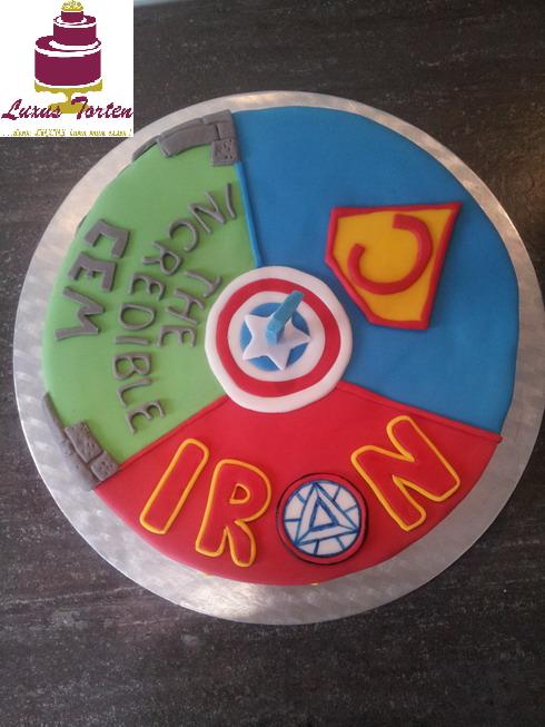 Da eigentlich geplant war, die Superhelden-Torte noch auf eine schöne Platte zu stellen, gibt's jetzt nur die Fotos, die ich selber zu Hause gemacht hab.