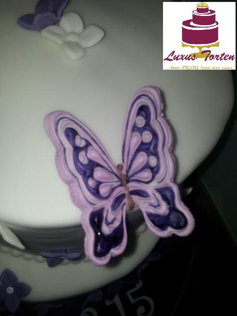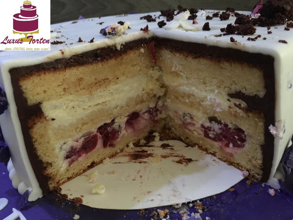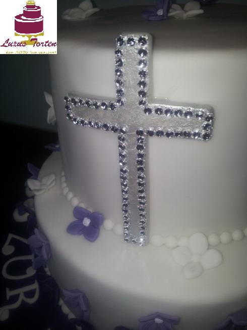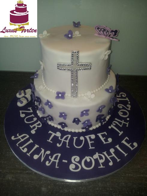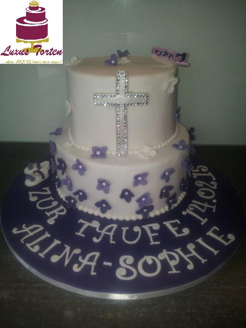 Die kleine Alina-Sophie wurde gestern getauft und ich durfte ihr eine Torte machen. Ein Traum in Lila mit vielen Blümchen und Glitzer! :) Unten war eine Käse-Sahne mit Kirschen und oben ein Schokokuchen mit Himbeer-Mascarpone-Füllung.