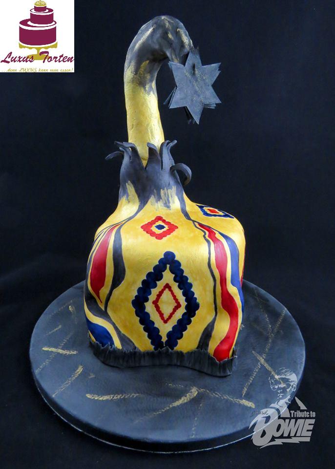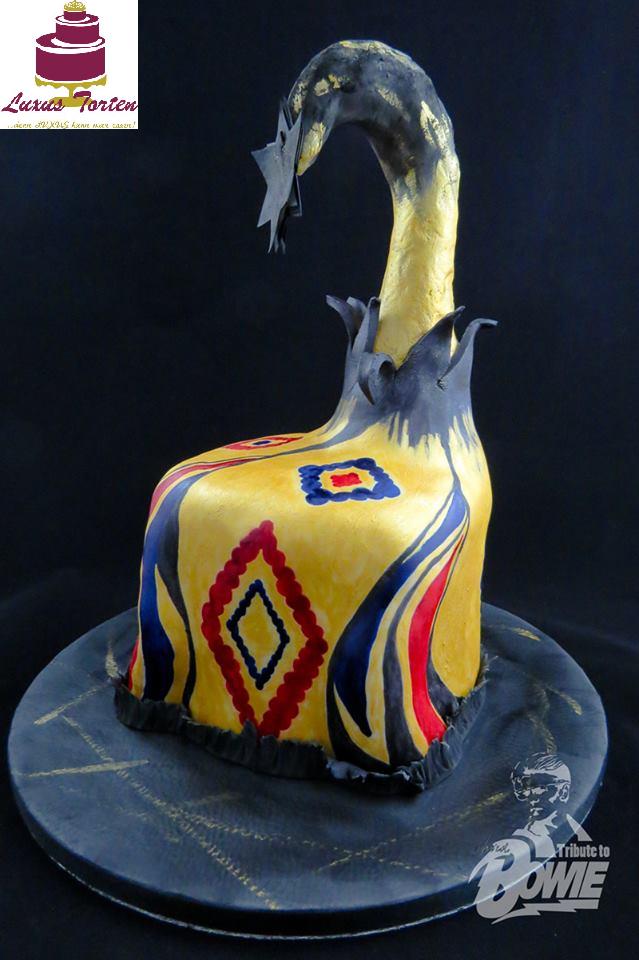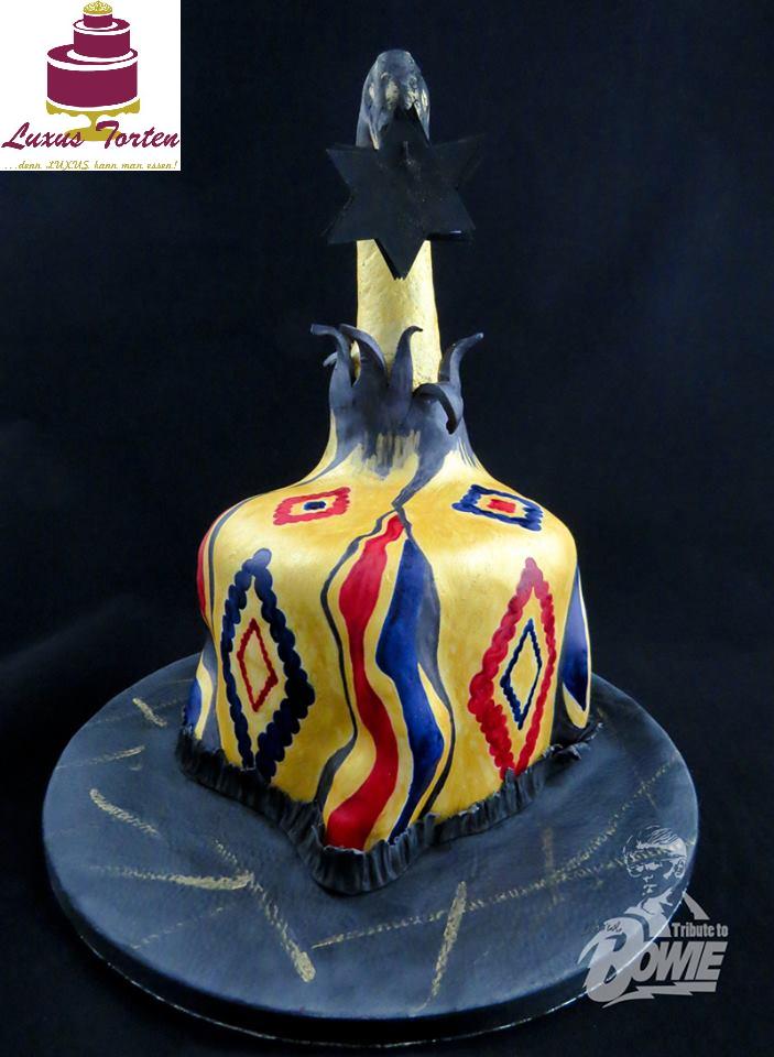 Ich habe mich bei meinem Werk für Starman entschieden, und habe das Design dem Bühnenoutfit angepaßt, dass er 1972 im Video anhatte. Außerdem wollte ich eine Verbindung zu seinem letzten Album "Blackstar" herstellen. In meinem Werk sind also beide Lieder vereint.