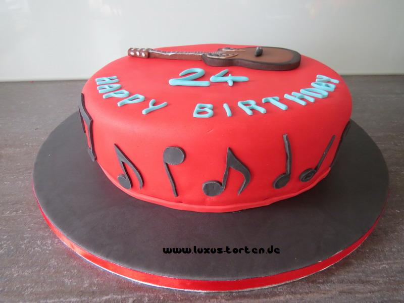Für einen Musiker gibt's zum Geburtstag eine Gitarrentorte mit Noten.