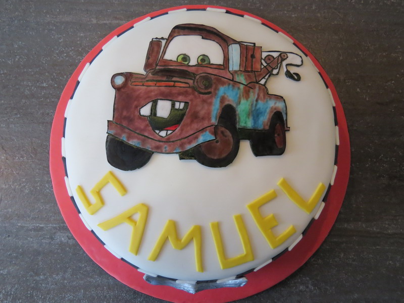 Meine erste Geburtstagstorte für einen Jungen! :) Innen verbirgt sich eine Regenbogentorte mit einer Heidelbeer-Frischkäse-Creme.