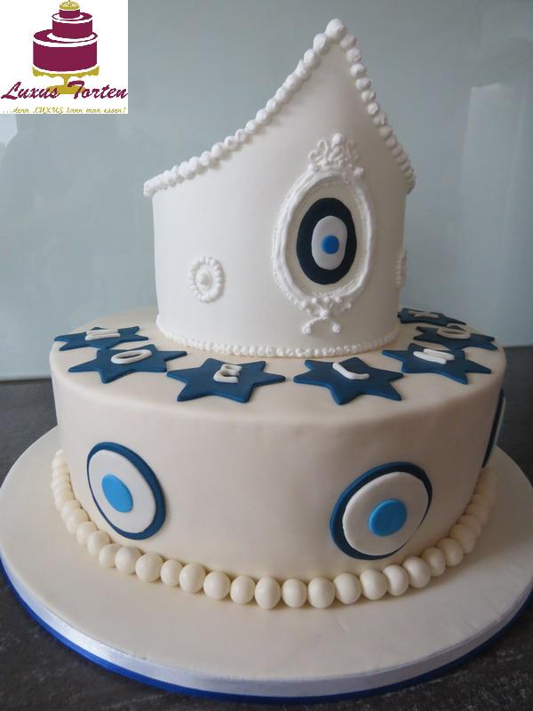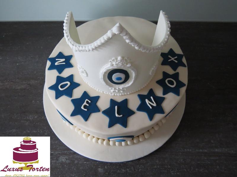 Der kleine Noel Nox hatte heute einen großen Tag und dafür habe ich ihm eine Torte gemacht. :) Die Krone ist aus Blütenpaste, verziert mit Royal Icing. Innen war ein Schokokuchen mit Himbeer-Mascarpone-Creme. :)