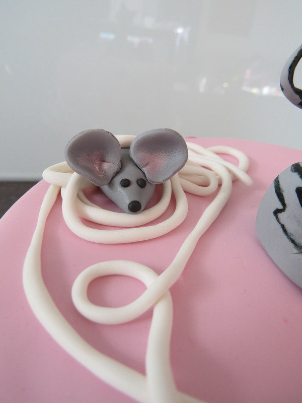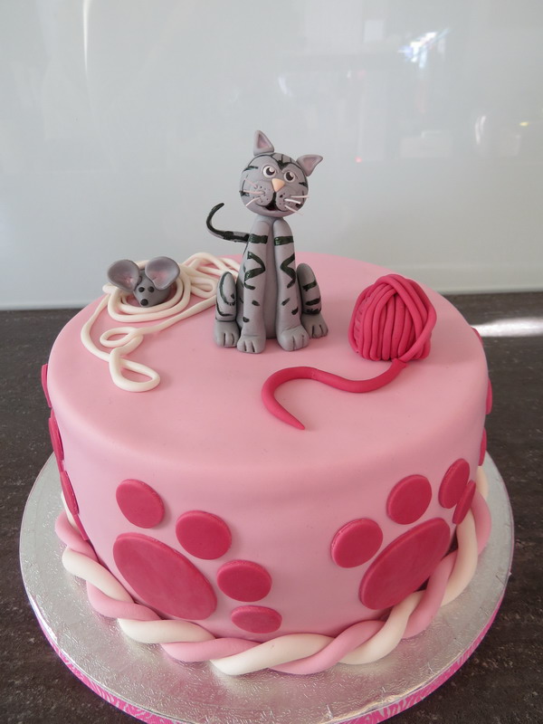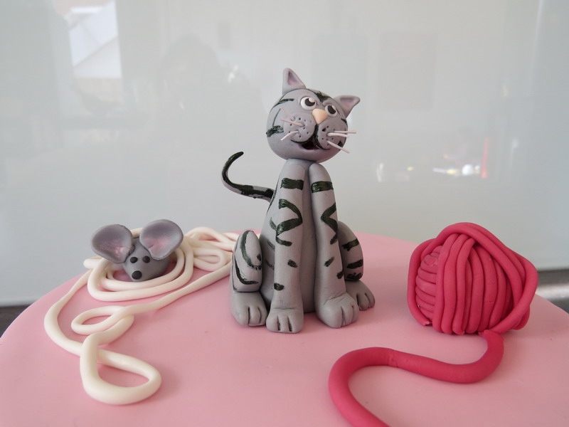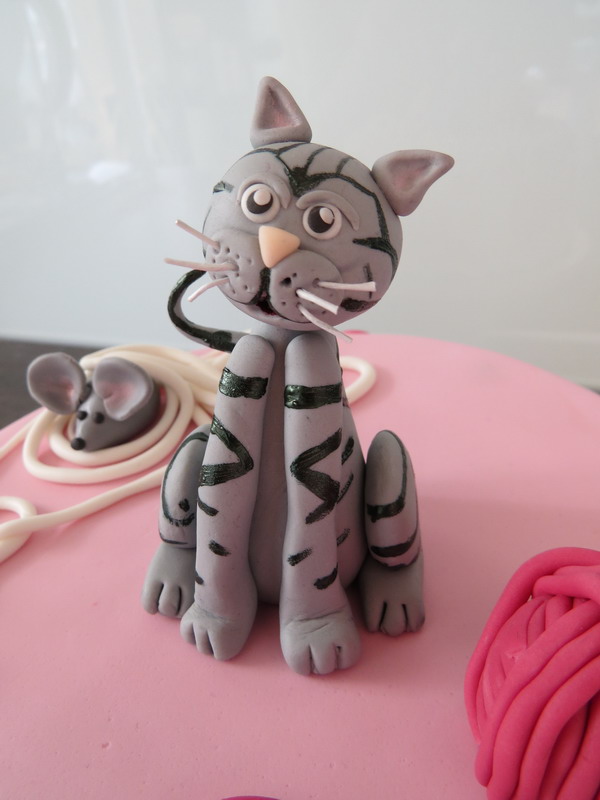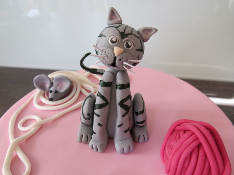 Die kleine Lisa hat sich zum 6. Geburtstag eine Katzentorte gewünscht, mit der Katze drauf, die sie bald bekommen werden. Es ist eine Silver Tabby-Katze, ich hoffe, ich hab sie einigermaßen getroffen.
